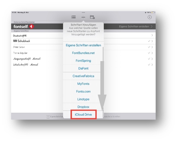 Die App AnyFont kostet ca. 1,99 € und ist recht einfach zu bedienen - folgen Sie einfach diesem Ablauf: