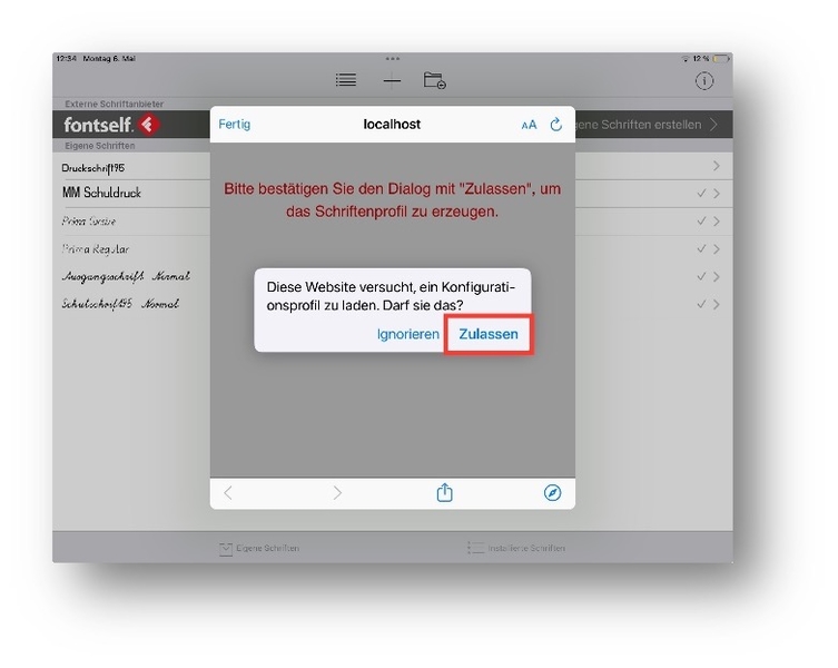 Achtung: das zur Verfügung gestellte, also downgeloadete Profil steht nur 10 min. zur Installation zur Verfügung und verschwindet dann wieder.