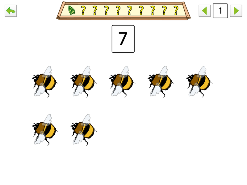 AboutNumbers is an early math application aimed at dealing with counting, sets, numbers and calculating in the number domain up to 10. An important feature throughout the entire applications is the structured representation of sets (2 lines and 5 columns) to facilitate non-counting strategies of recognizing sets, the understanding of the relation among numbers and the notion of numbers in general.