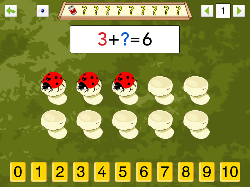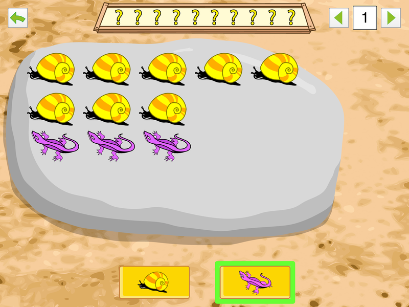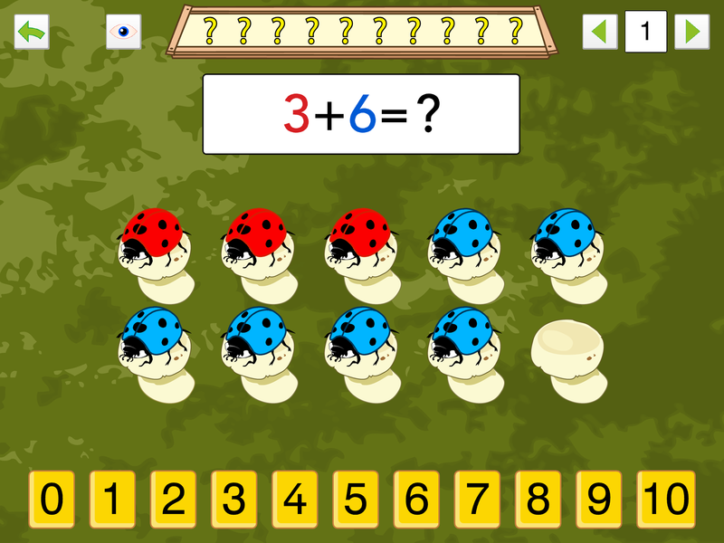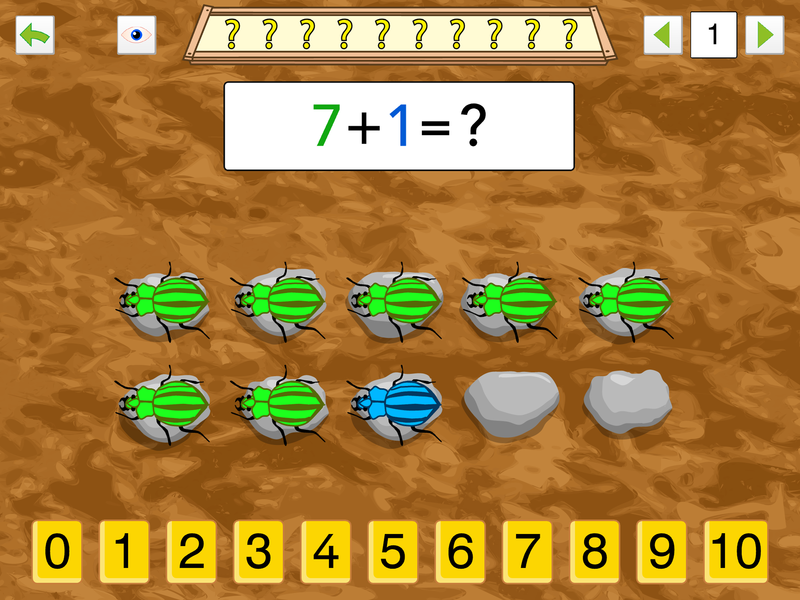 The application contains a wide number of increasingly complex exercises. Each exercise is aimed to further a specific skill (e.g. counting or calculating).