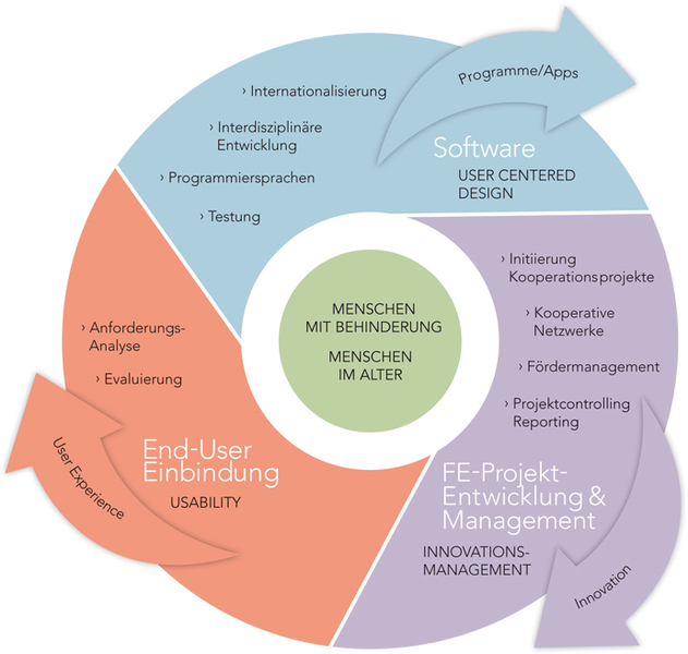 - Etablierter F&E-Partner für Universitäten, Fachhochschulen, Verbände, Vereine, Unternehmen und Multiplikatoren hinsichtlich aller Aspekte barrierefreier Informations- und Kommunikationstechnologien für Menschen mit Behinderung aller Altersstufen.