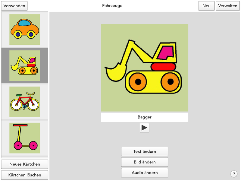 TouchMe Pairs ist eine Variation des beliebten Spiels „Paare Finden“. Der Inhalt eines Kärtchens kann aus Bild, Text und Ton bestehen. Je nach Einstellung können neben der klassischen Variante (Bild-Bild-Zuordnung) auch andere Kombinationen gewählt werden (z.B. Ton-Bild-Zuordnung, Text-Ton-Zuordnung und einige mehr).